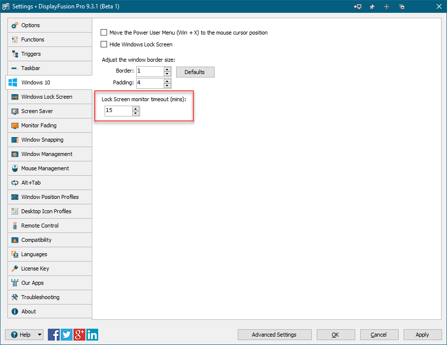 Change windows 10 lock screen timeout from desktop.