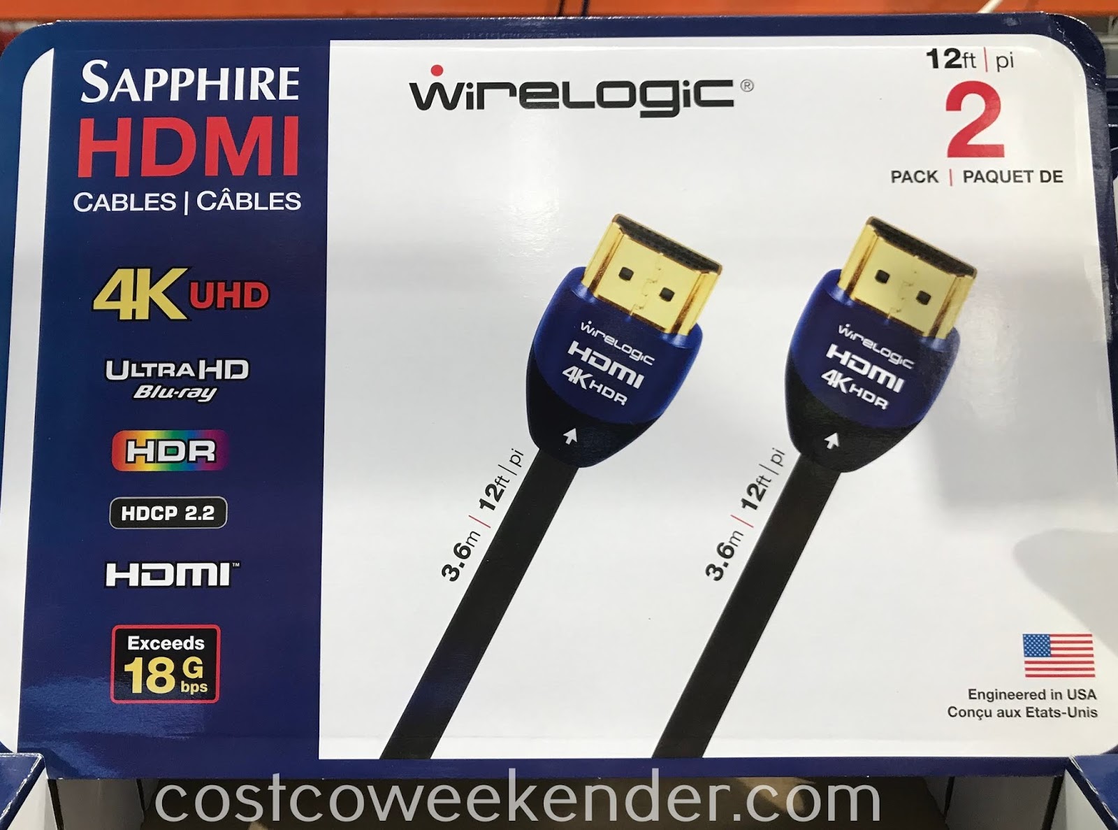 Wirelogic 12 feet sapphire hdmi cable 2 pack 2 pack of 12 foot cablessupports 4k ultra hd resolutionsupports 3dsupports all frame rates surround sound formatsdesigned and engineered in the u s a.